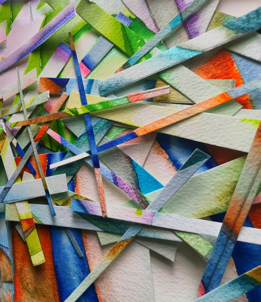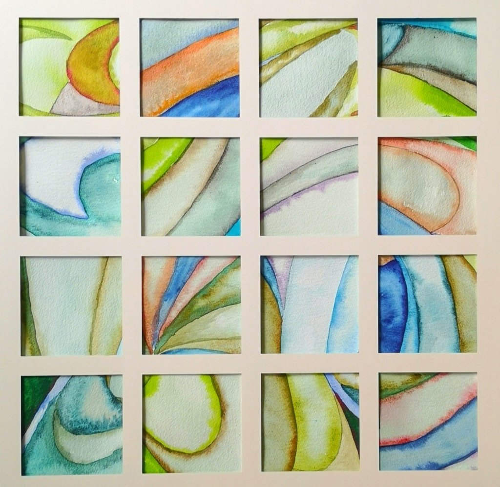 I was in a deconstructing mood and chopped up a watercolour that had been deliberately painted to be cut up.
