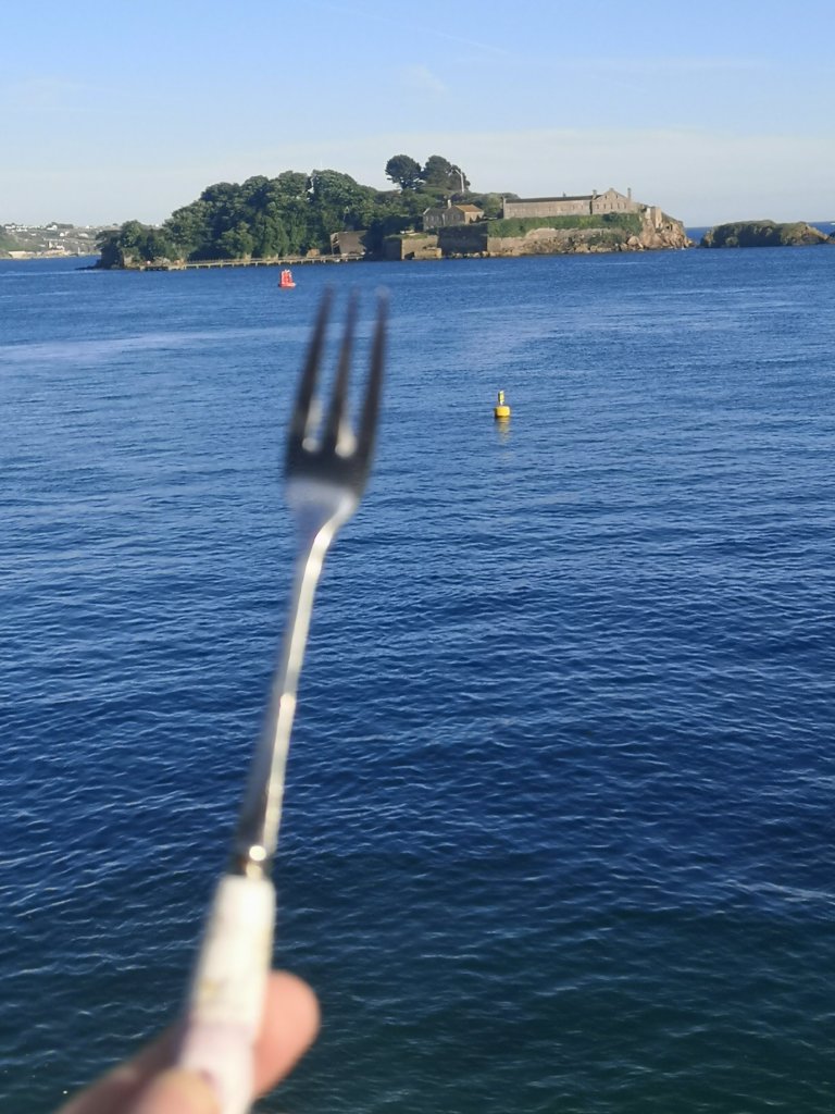 Last night had perfect conditions but even without perfection the sea has been filling up with swimmers, this month, as the water slowly warms up. An average June temperature of 14 degrees was boosted a little, last night to 15 degrees. Suddenly the sea has the intimacy of a swimming pool, we are close enough to other swimmers to converse with people other than our little band of bobbers. Even the proper out to the third buoy swimmers had a little more competition for sea space. Now we have done a full second winter of sea swimming there is a familiarity to the circling of the sun. The topic of conversation in early June is how many of us can fit in two swims on the summer solstice and achieve the real life commitments of families and work. Sea swimming became so popular during the Covid lockdowns; now they can, cafes are opening early to offer early morning breakfast to the swimmers who are up for a 4:45 swim. What fabulous luxury, no more wrestling with baps, bacon and tinfoil before the early morning dip. Just the regular bap wrestling that is an integral part of getting dressed in the public domaine after a sea swim. One last watery image to clear your minds of the bap wrestling. Maybe the first day of summer in Stonehouse.