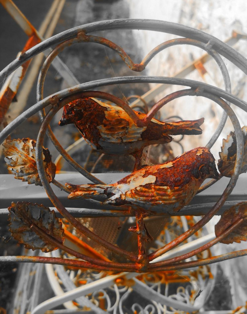 The recycling team failed to take any of it but local people have taken more than just photos of the assemblage. Five minutes or so may also have been spent by me, yesterday, with someone elses garbage. Yesterday my favourite bit of rust were these two birds
