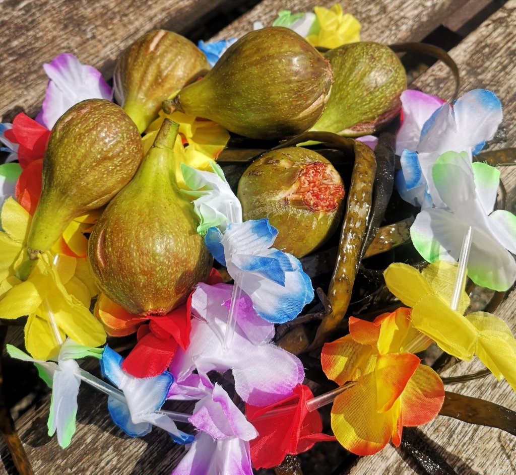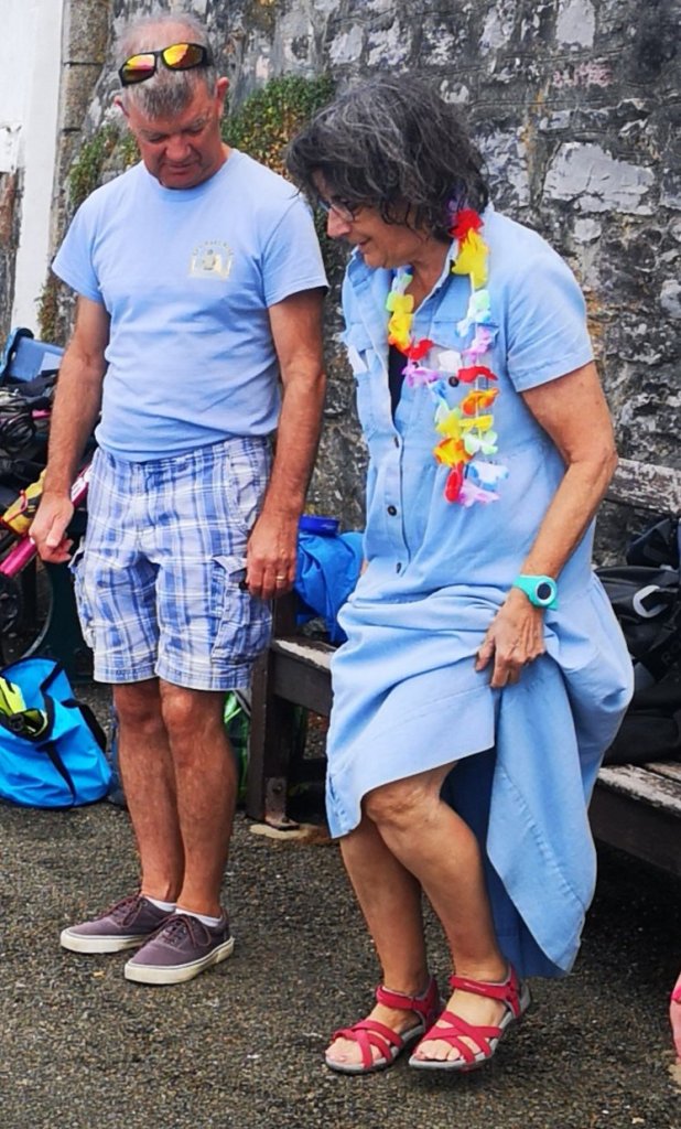 Friday’s swim turned into quite a gala with Hawaiian Leis, cakes, figs, dancing lessons and gathered seaweed.