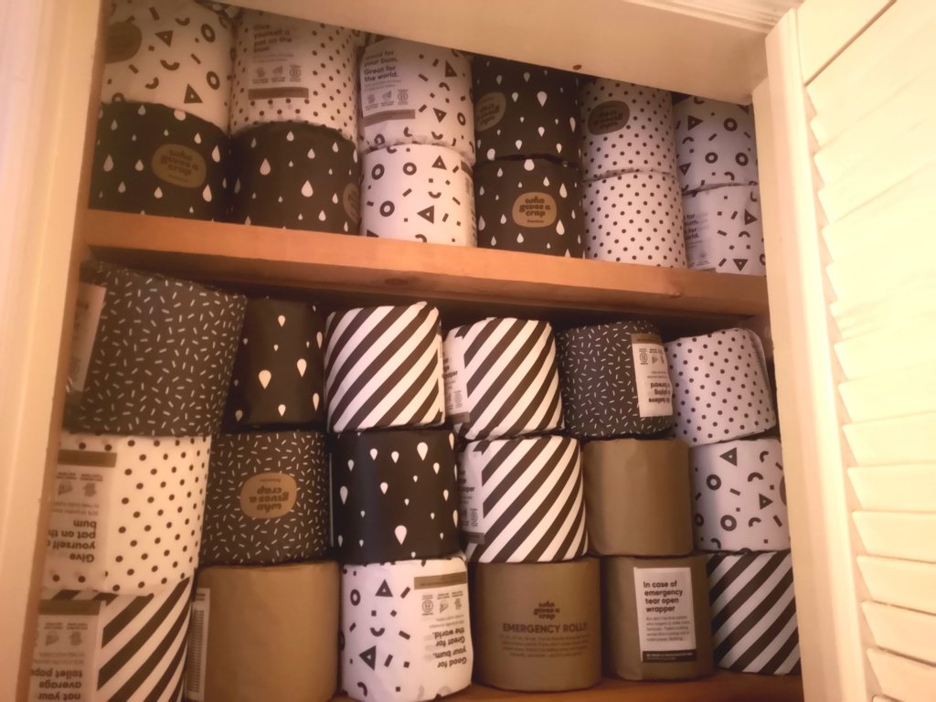 * Who gives a crap about my domestic admin? There was a small order error when I ordered the festive toilet rolls. The error was quickly rectified, rather generously, by the company. Yesterday’s most pressing domestic admin task was to find homes for 100 toilet rolls.