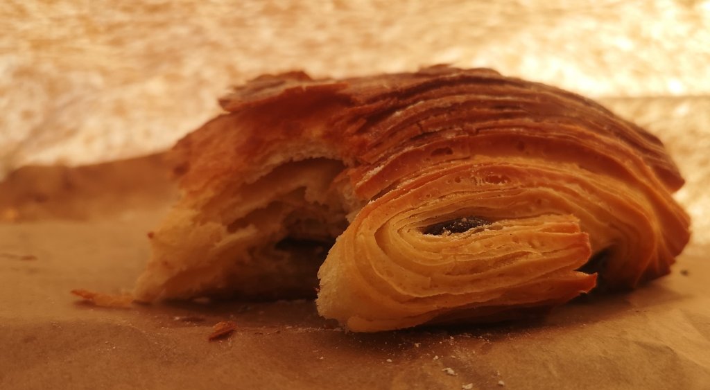 She firmly believes that the beautifully laminated slightly crispy doughy part of a chocolate croissant is hers and I am left with the awkward-to-eat bit that contains the chocolate.
