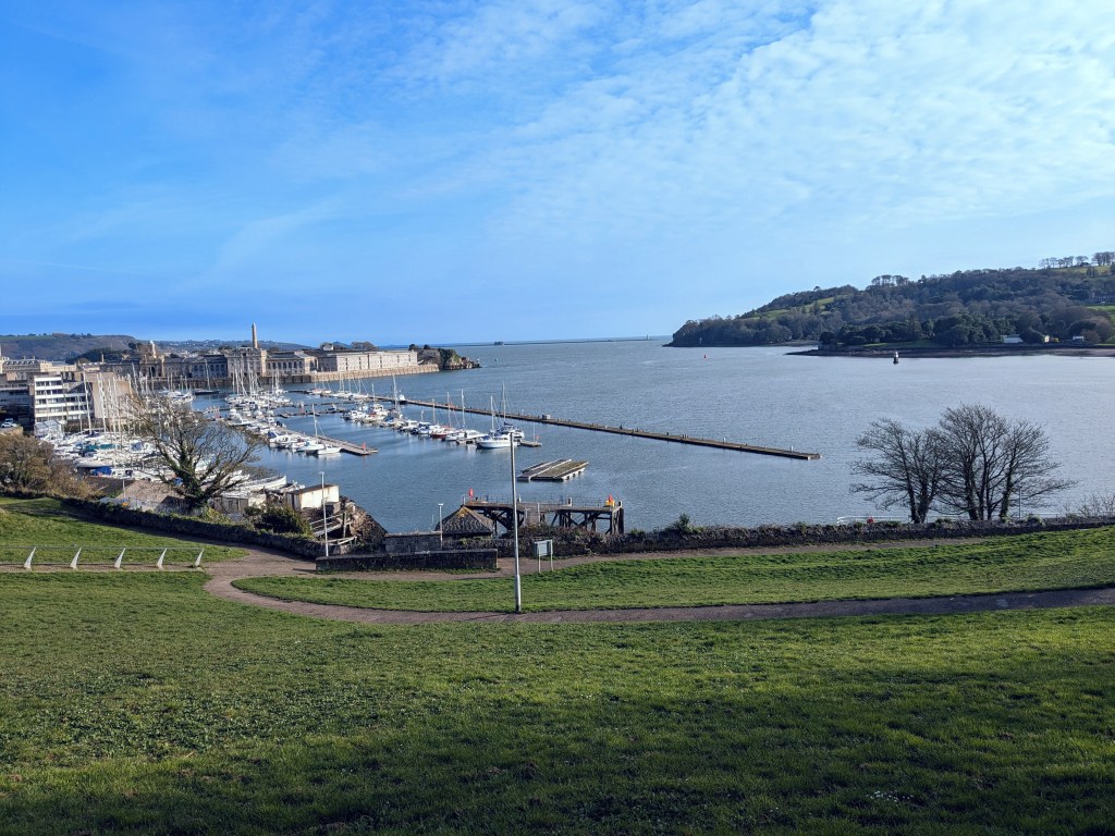 Happiness also exuded from the dogs when their afternoon adventure took them to just the other side of the water from home, for a walk, and they got Mount Wise park to themselves and could do chasing and wild running on a grassy hillside, unbothered or interrupted by any other dogs or humans.