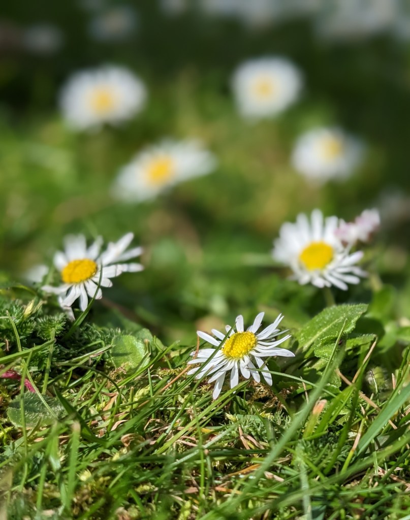 I am a lover of the absolute serendipity of daisies. Daisies are free -spirited, establish themselves wherever they choose and turn their heads to the sun. If only life could be this simple. These daisies are growing at a Lawn Tennis Club that is soon to open the gates to the public to raise money for local charities. Just beyond this photograph there are men and machines spiking and prepping a lawn to look the very best for the ‘Big’ weekend. These daisies are almost certainly gone for now, but men and machines are no long term match for diligent daisies. They will be back.