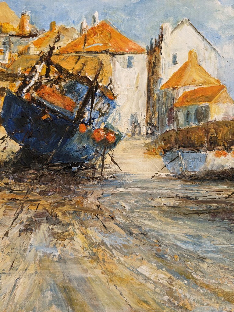 What to ponder on a warm Bank Holiday Monday. This fabulous painting by Oonagh Glancy is the nugget of this ponder. It symbolises a coming together. For the first time since Covid, Drawn to the Valley also threw in mass catering at their Spring Exhibition. Coffee, tea, cakes and other treats were served at a huge communal table. It was the highpoint for visitors, simply sitting down and talking between artists and visitors, old friends, new friends, complete strangers and hungry bowling escapees from the Bowls Club next door. Competition whites smudged with spring-green grass stains.