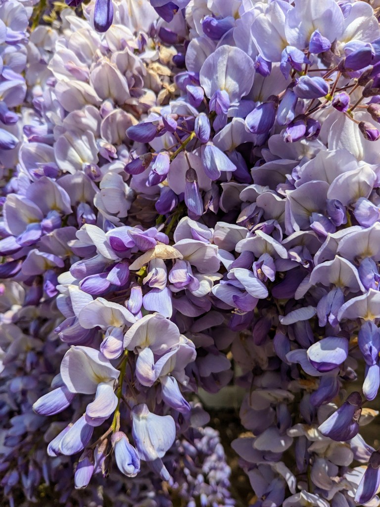 We had a little lunchtime trip to Mount Edgecumbe on Wednesday. A day off from house moving stuff, exhibition stuff and tennis club stuff. The weather around the Wisteria was deceptive. We were blown about when we later walked on the parkland but none of that is the subject of this blog.