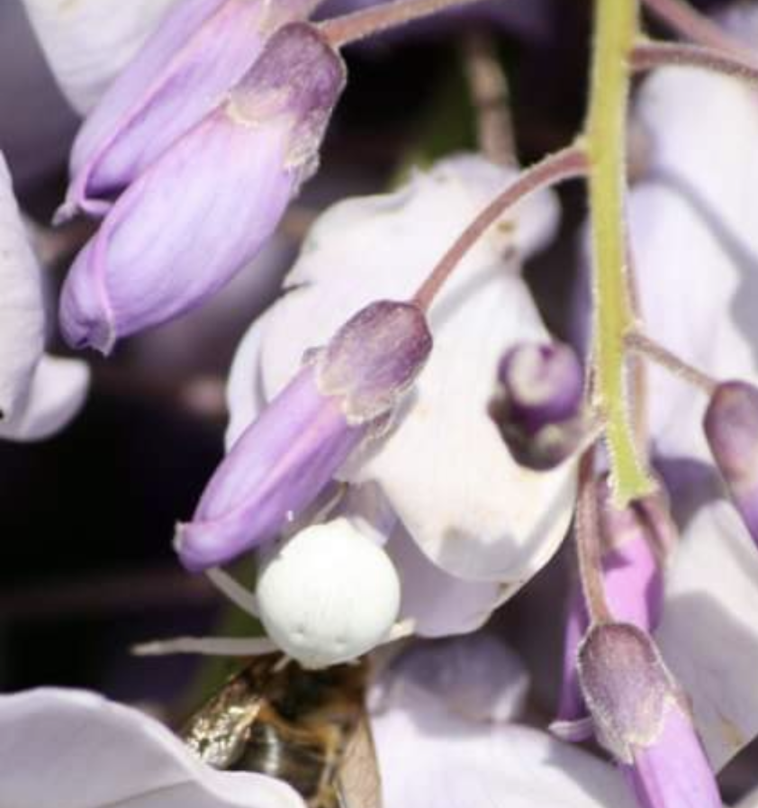 The glorious Wisteria sent me searching in my photo archive for a series of photographs of a special Wisteria spider that I photographed on my own isteria some years ago. My apologies to spider haters but I was really thrilled to get a photo of the spider actually making the silk for her web.