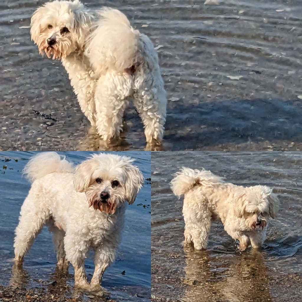 This morning it was very much back to work for them. Hugo hunting seaweed and Lola wrestling sticks. Yesterday I was back bobbing in 12 degrees of Atlantic sea after 42 degrees in Bangkok. Yesterday was a birthday bob for a friend and ex colleague.