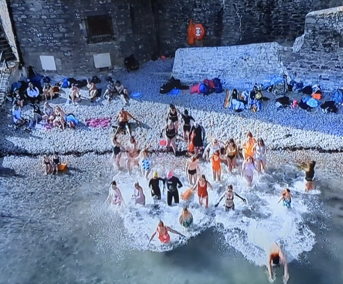 This morning it was very much back to work for them. Hugo hunting seaweed and Lola wrestling sticks. Yesterday I was back bobbing in 12 degrees of Atlantic sea after 42 degrees in Bangkok. Yesterday was a birthday bob for a friend and ex colleague.
