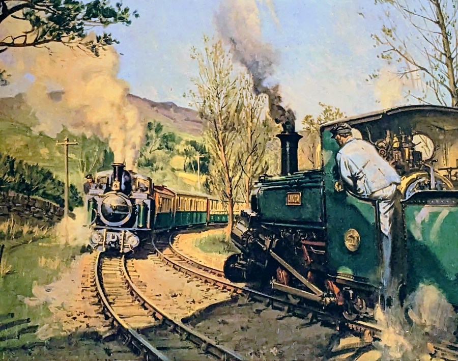 Outside the weather was being very inclement. Inside the close-fitting carriages our party of four nattered our way up a mountain and back down again. The mechanics of our conversation lubricated by indifferent coffee and glimpses of spectacular and historic landscapes. The waiting room at our destination showed an image of the same journey made in a sunnier moment.