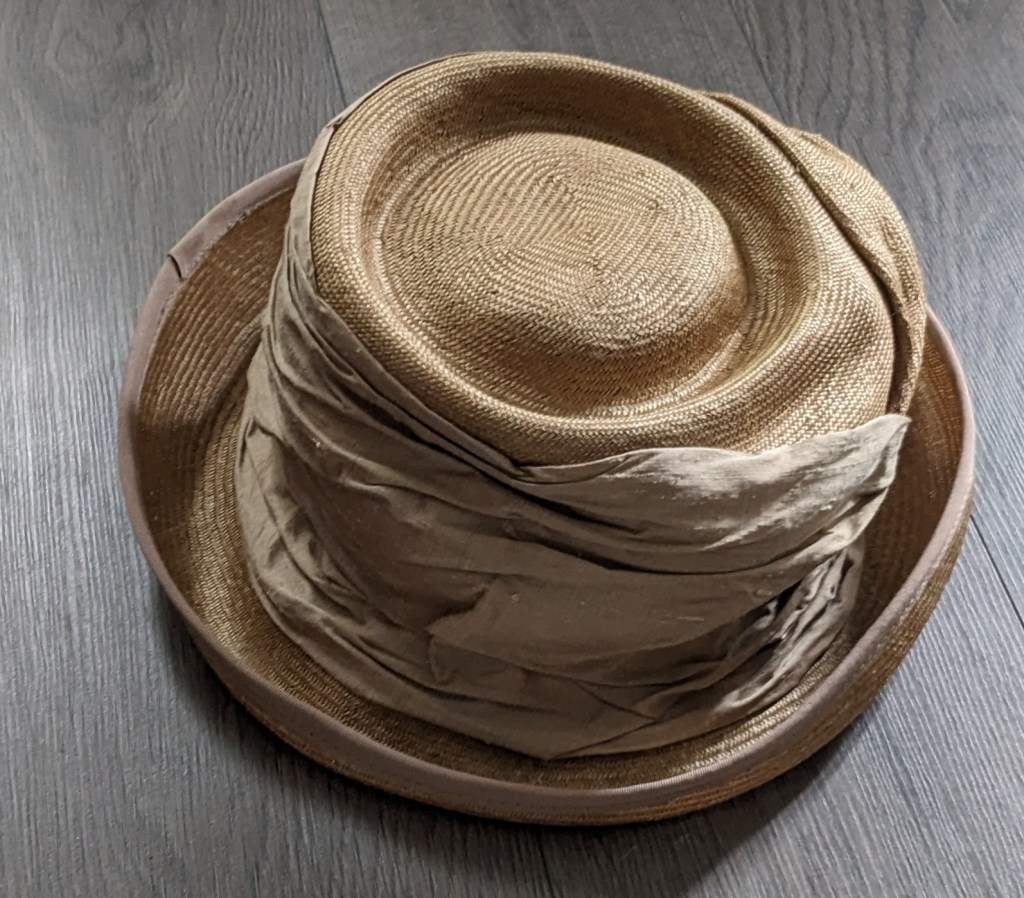 Silk and straw hat. £10. Sandra Phillips at the local Hospice Charity Shop today.