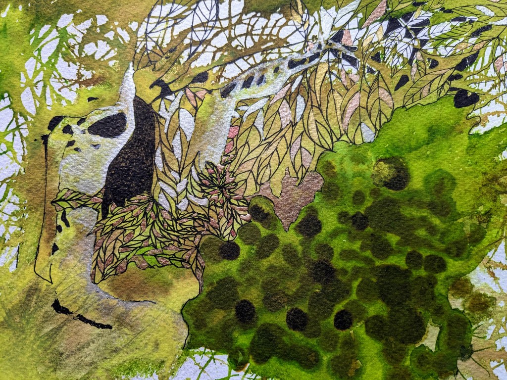 It has a long way to go but I already know the painted boulder would be a comfortable place to rest and the glade is becoming more fantastical by the brushstoke.