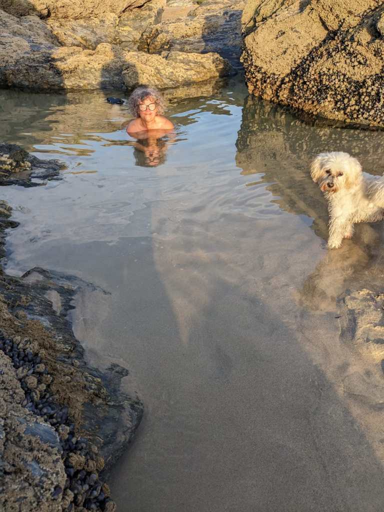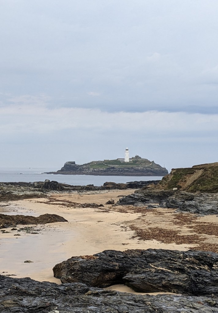 We went in search of an offshore breeze yesterday and found ourselves at Godrevy at Gwithian Towans on the north coast of Cornwall. The September Heatwave made a large rockpool the perfect spot for a skinny dip.
