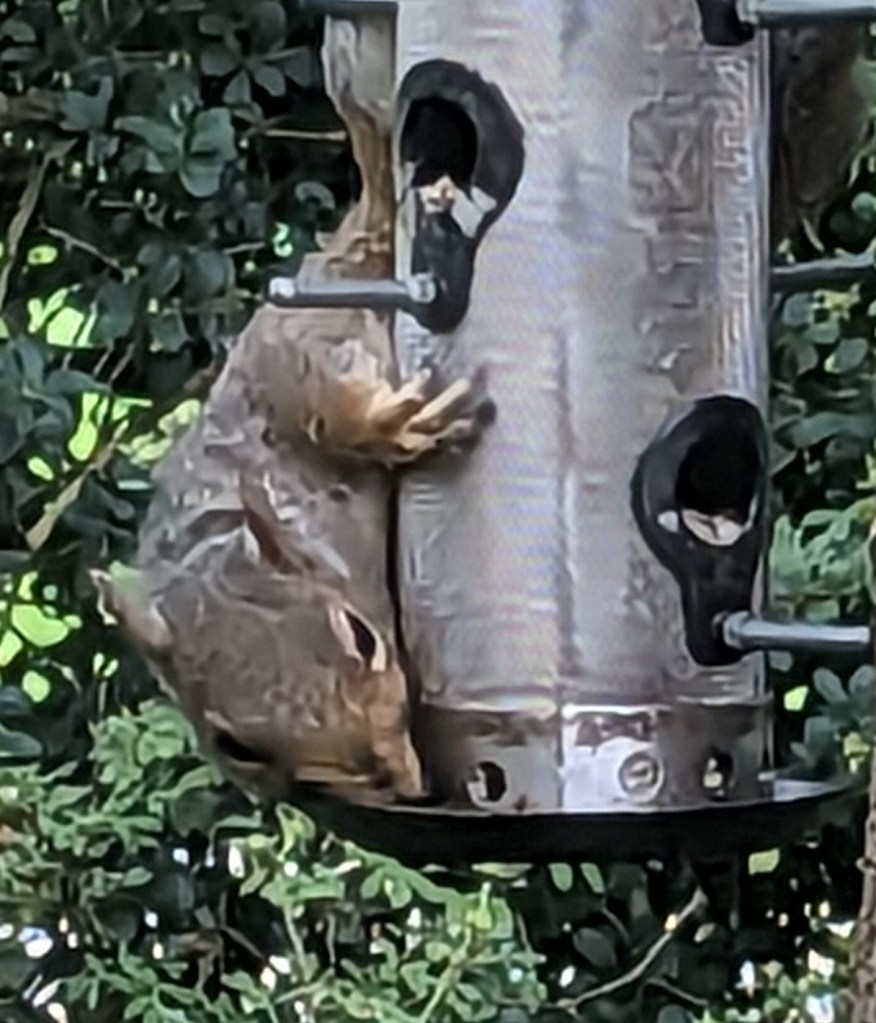 No motivational message for the squirrel on the bird feeder, they also need no encouragement to eat. This lovely lunchtime encounter happened as I overlooked the Cotehele Dovecot.