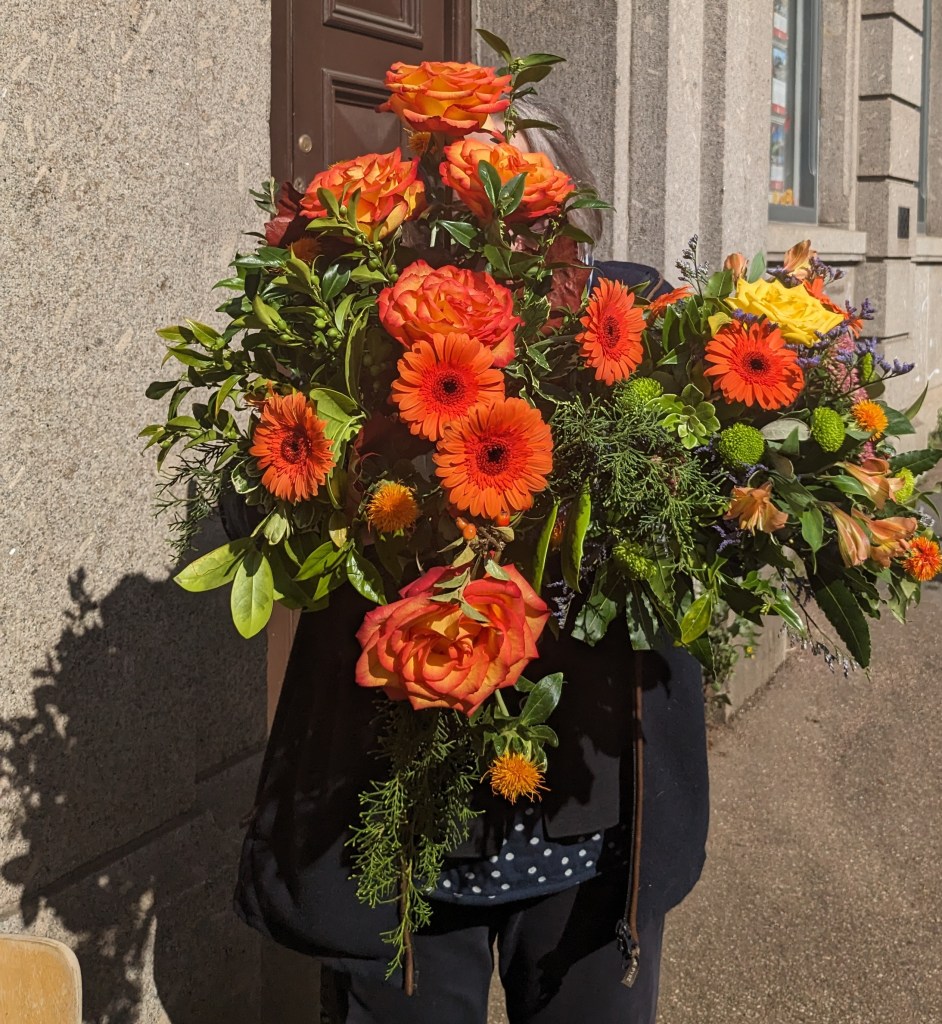 September is also the time of Harvest Festivals , we caught a flower arrangement on the move.