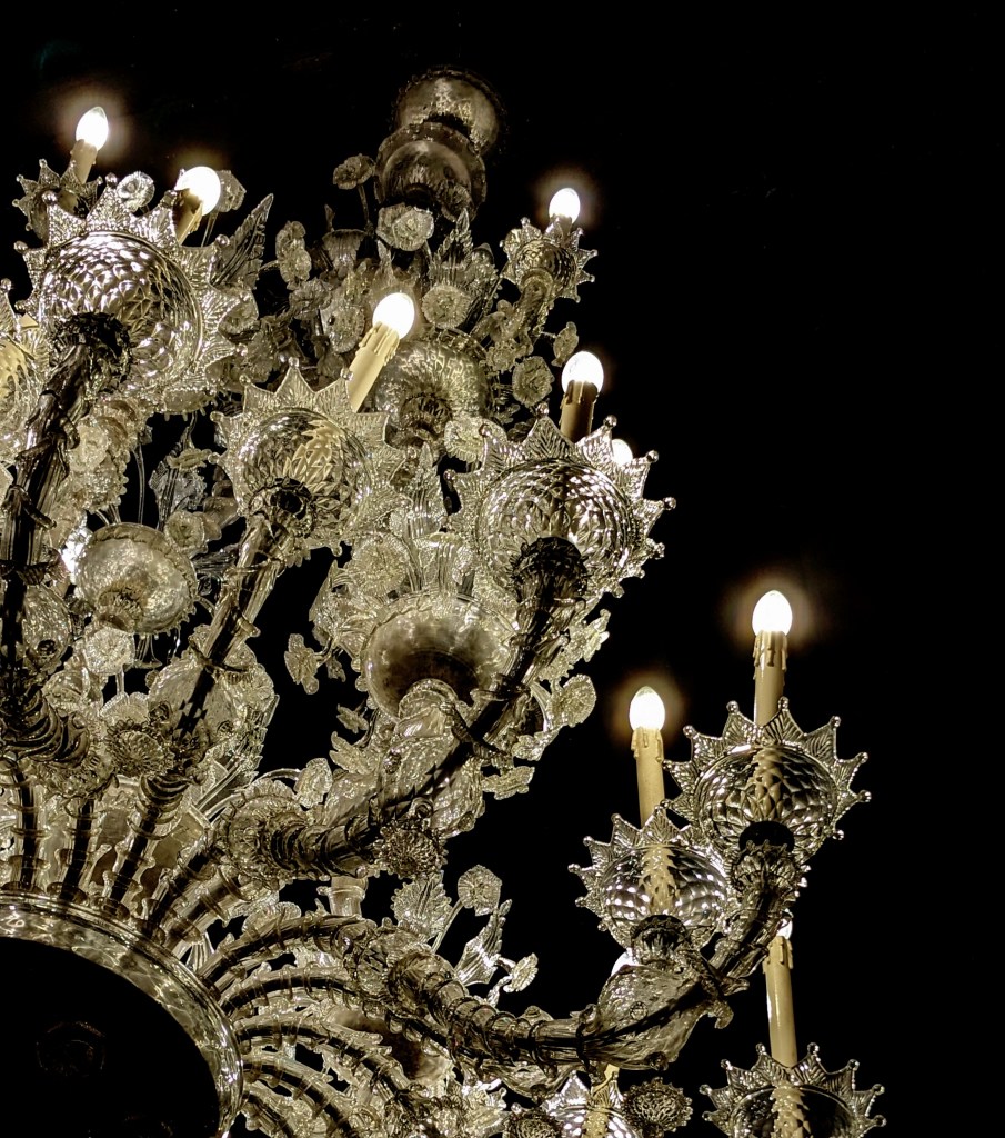 I love, love this word that is new to. me. and the chandeliers are pretty cool, though I can see how that many could certainly be excessive and I’ve never actually had one