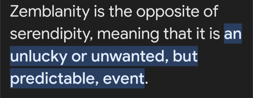 Quite the opposite of serendipity which , thank goodness, takes us to the black hole at the centre of this blog. Zemblamity