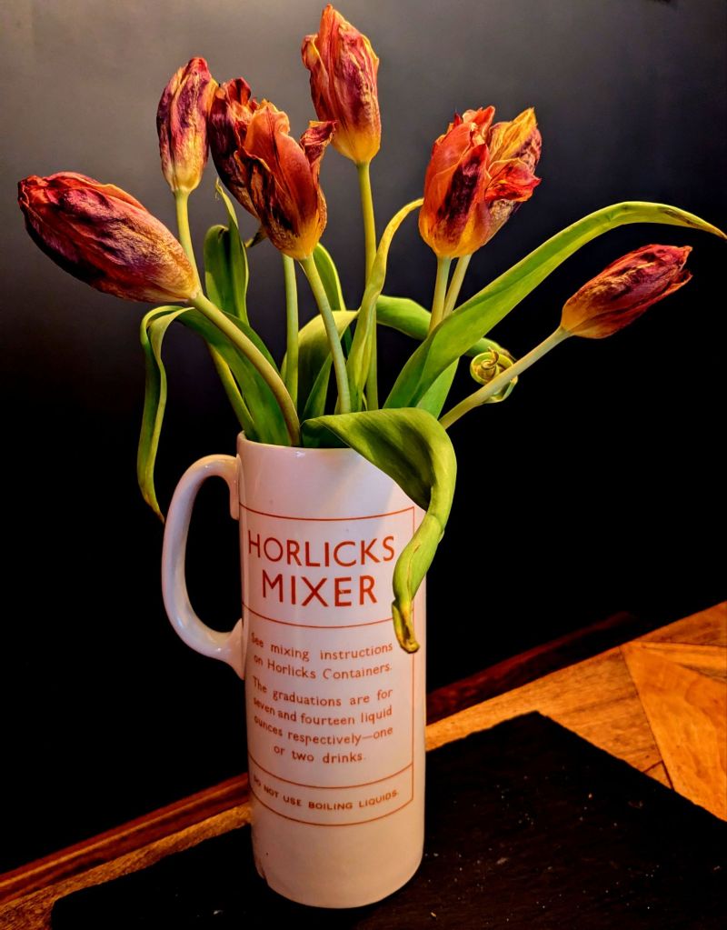 Their floppy stalks are stiff with rehydration. They have a different beauty than the one predicted for them, the one they would have had in the past. But they are gorgeous in a different way. They still have a future. The equilibriumist with optomist tendencies at work.