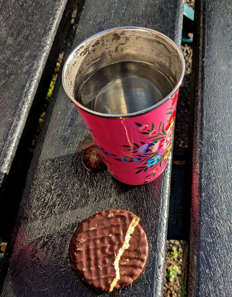 4 Eat chocolate biscuits after the bob. Notice my cup is already more than half full.