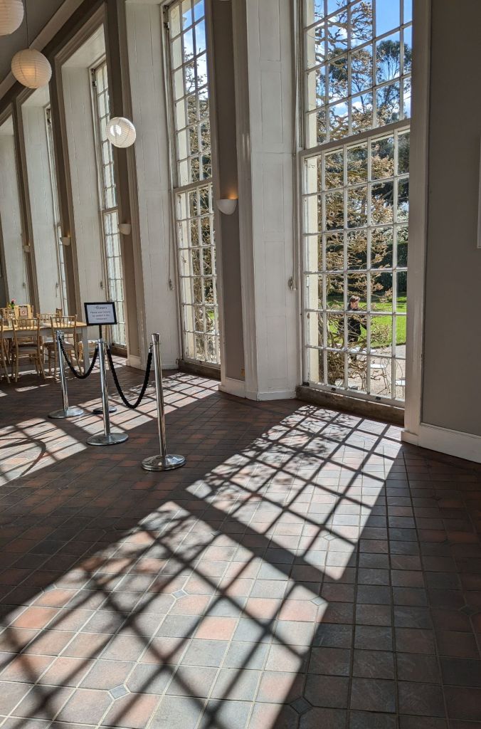Two of my favourite things. Spring sunshine and a complicated image. The Thursday before a long weekend is always a little bit exciting. For my art group, it is the final weekend of a very successful exhibition. This is the view from our sales desk. Sunshine and showers, caught in a colourful moment.