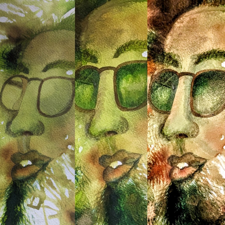 Which will need to be greened down a bit tomorrow and his teeth painted in. Still avoiding the actual tasks of the day I gave him a digital tweak using a pop filter.