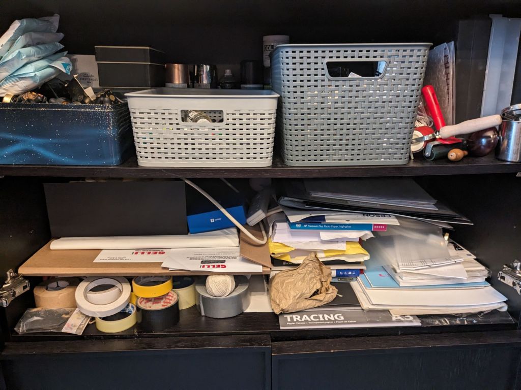 But then the ‘ tasks’ seduced me, and before paint could be laid on paper I started a minor tidy up which led to a major tidy up of the art cupboard.