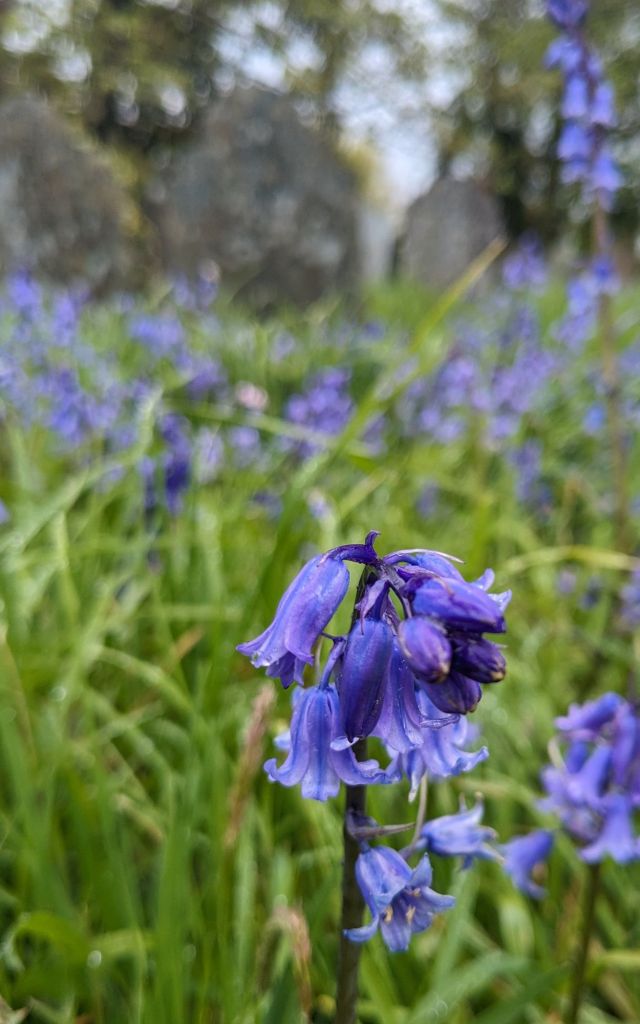 The fragrance as the hundreds of flowers warmed up, was unexpectedly powerful, not sweet but heady and musky with a hint of garlic. Since I have never heard of a bluebell perfume I assume it is a redolence that is hard to replicate by the beauty industry. I could have rolled around like an excited dog in fox poo. Obviously I didn’t do that but a smell so gorgeous could easily make me do giddy things.  What I did do is study old grave stones.