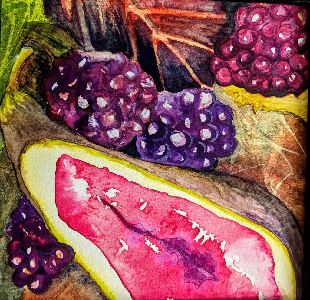 The exhibition space has a 360 degree film projection dome. Our paintings will be projected on a massive scale , which is very exciting. This little painting will be about 12 feet square. That is going to be surreal!