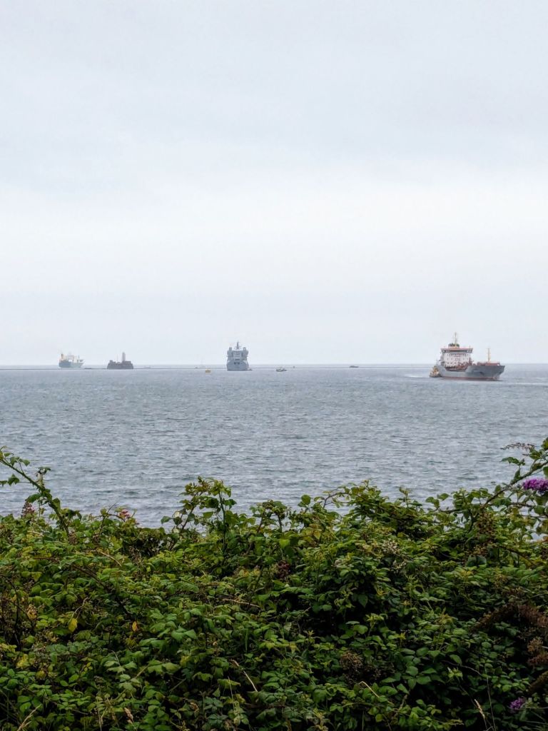 This morning we awoke to the graceful dance of maritime traffic going about its business in Plymouth Sound. After being lulled to sleep with the gentle thud of Drum and Bass at celebratory parties and International teams slipping away at midnight.