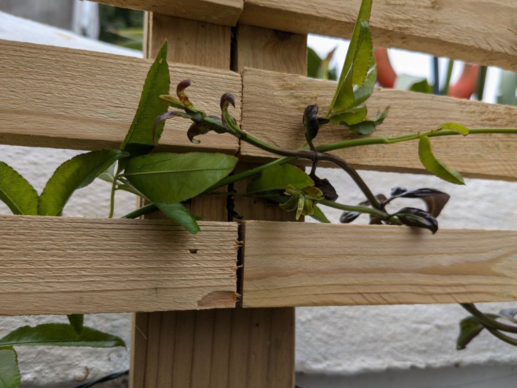 But today is all about a plan coming together. 3 months after the new trellis went up on our wall our climbers are getting acquainted.