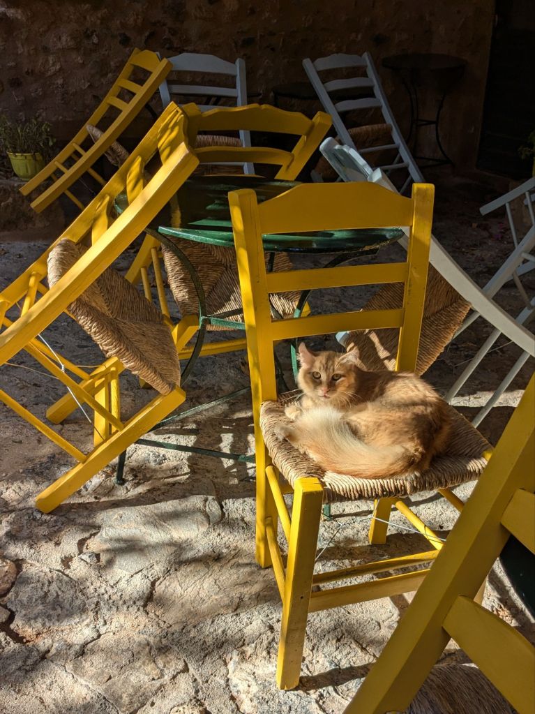 Cat on a chair in Monomvasia