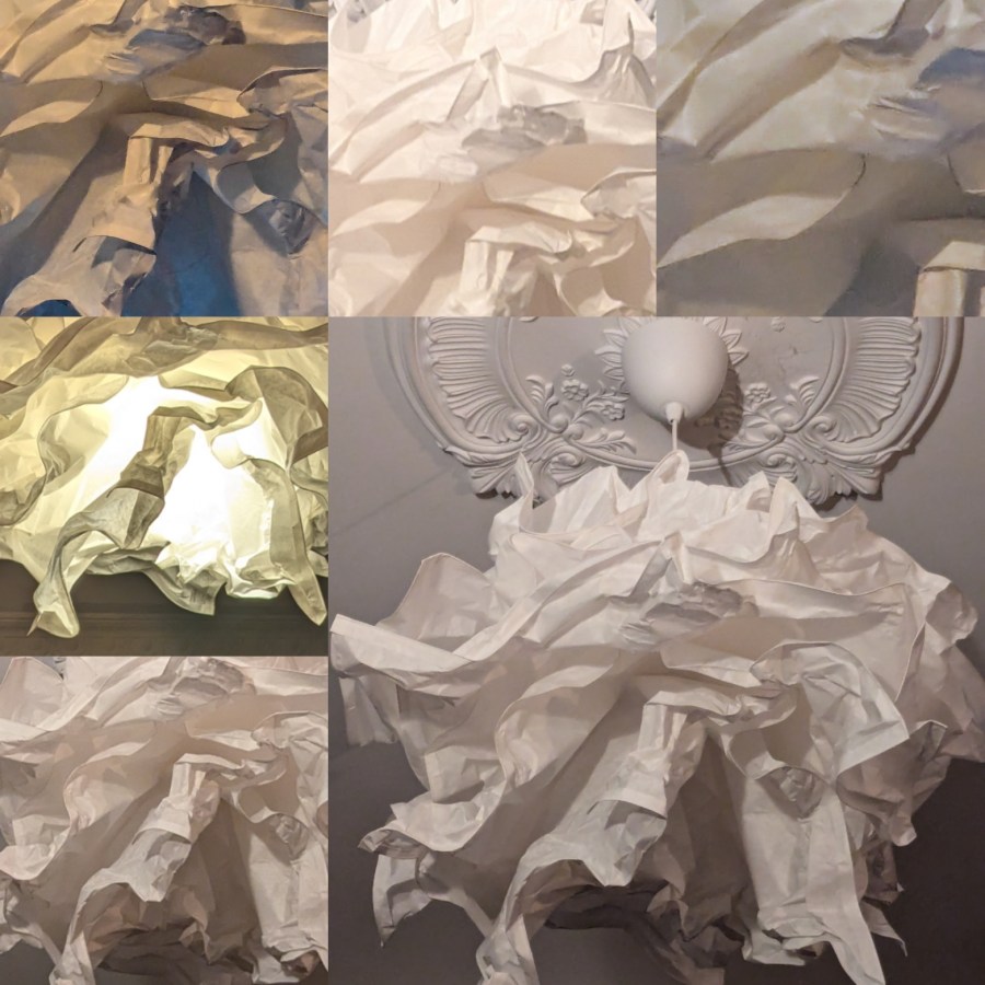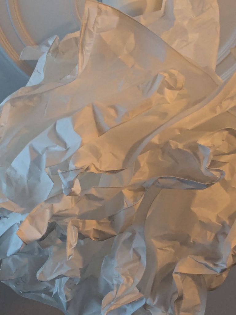 So now I can be thrilled with light playing on crumpled paper rather than looking up in horror at dusty chandeliers, and I didn’t even know quite how dusty they really were.