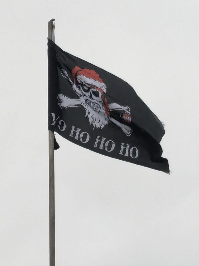 Pirate Santa eloquently shows the difference. West Country Greige is back this morning. He also sets the monotone ( with a pop of red) of my day.