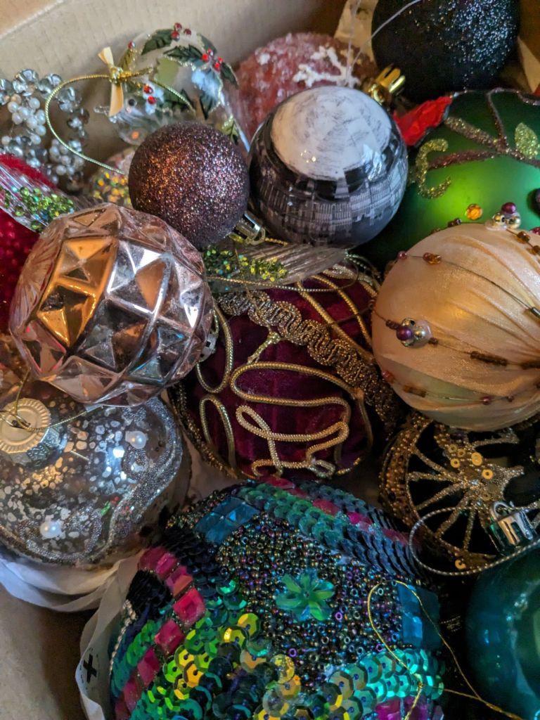 Tomorrow the unusual job of returning unused decorations to the storage box will be done. For an inexplicable reason the sandalwood box that always holds our Christmas Decorations for 11 months of the year also holds the ashes of a long deceased cat. He may wonder what is going on, his fragrant sarcophagus is usually baubleless in December.