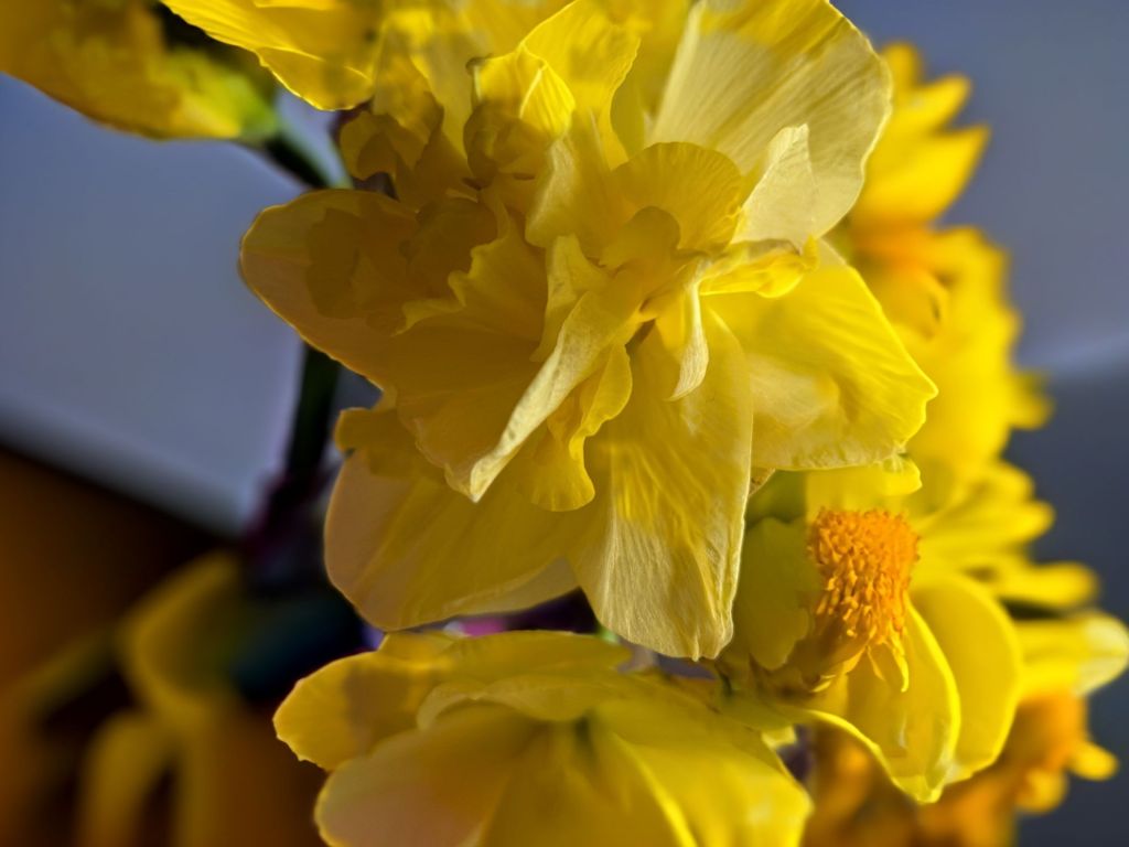 Two weeks ago we bought two bunches of tight budded daffodils at a reduced price of 49 pence each bunch because they were past their sell by date. Two weeks on they are in full bloom and are gorgeous double headed daffodils. Not past their sell by date at all.