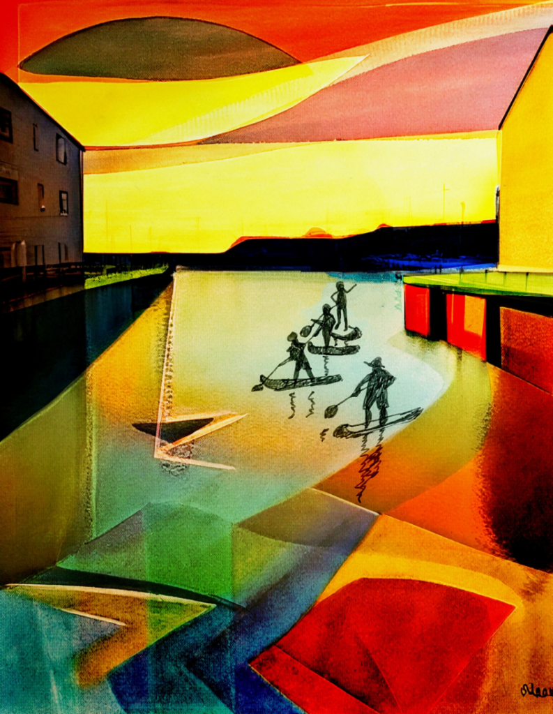 I decided to slightly change the location and relative size of the paddleboarders. I will tinker with them some more over the next few days.