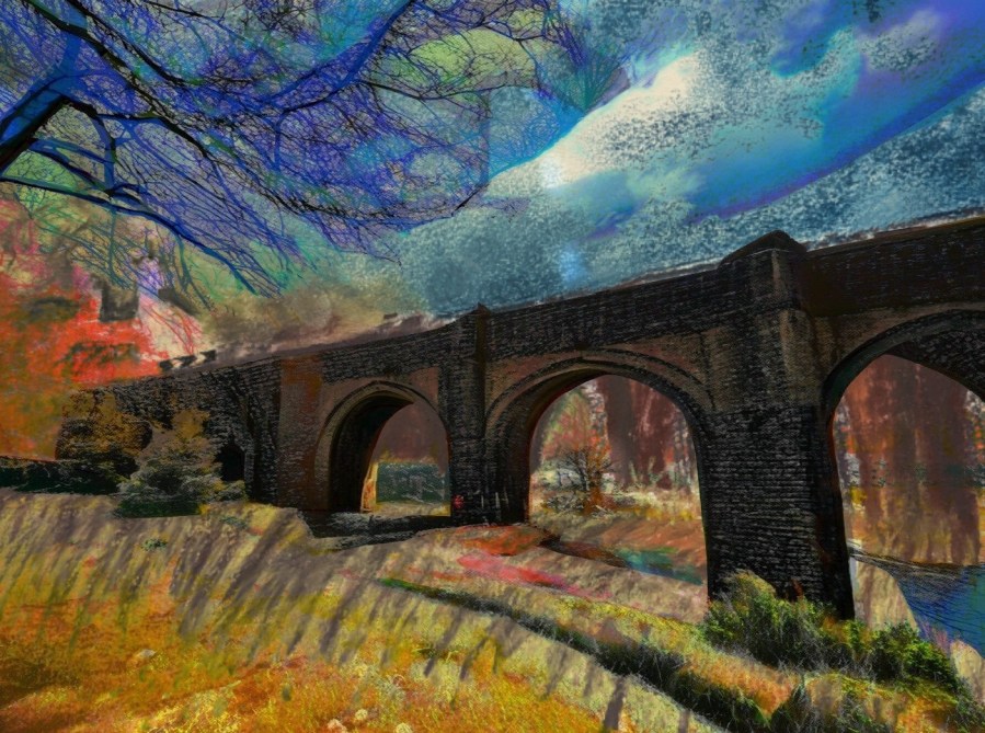 Following my own Mr Turner theme of Mists and red splodges. I have done two Newbridge sketches.