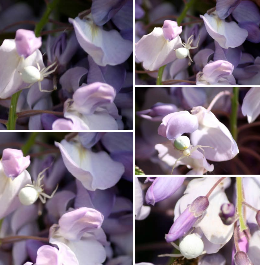 Wisteria in April is a fabulous herald of a properly established Spring. The Wisteria above and the white spider set the bar very high. The Wisteria grew on a pergola in my Cornish garden and attracted white crab spiders, who could be a little spooky.