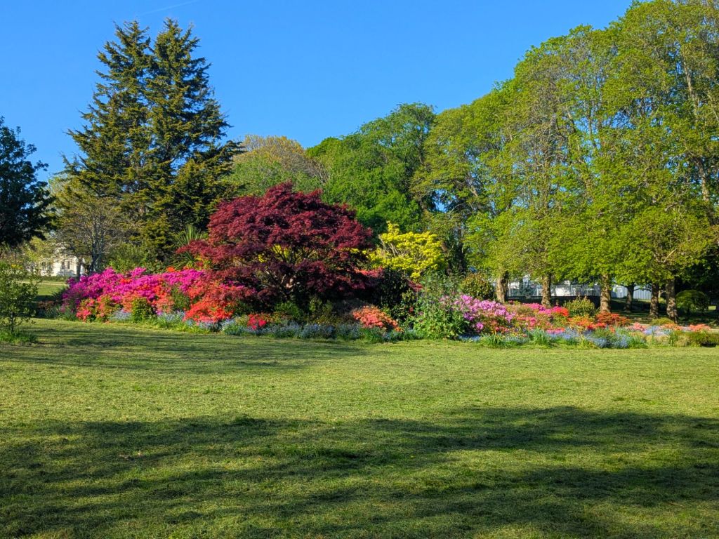 To the fiery colours of Far Eastern Azalea bushes, simply by turning my body 90 degrees.
