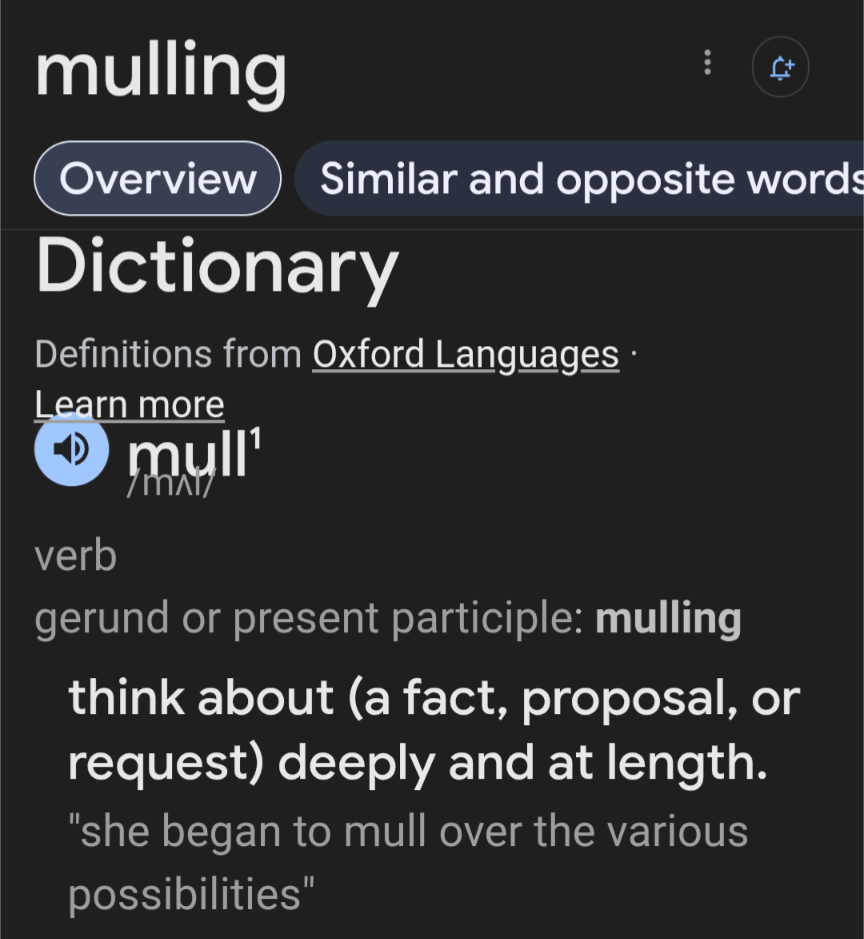 Just one stark difference between pondering and mulling.