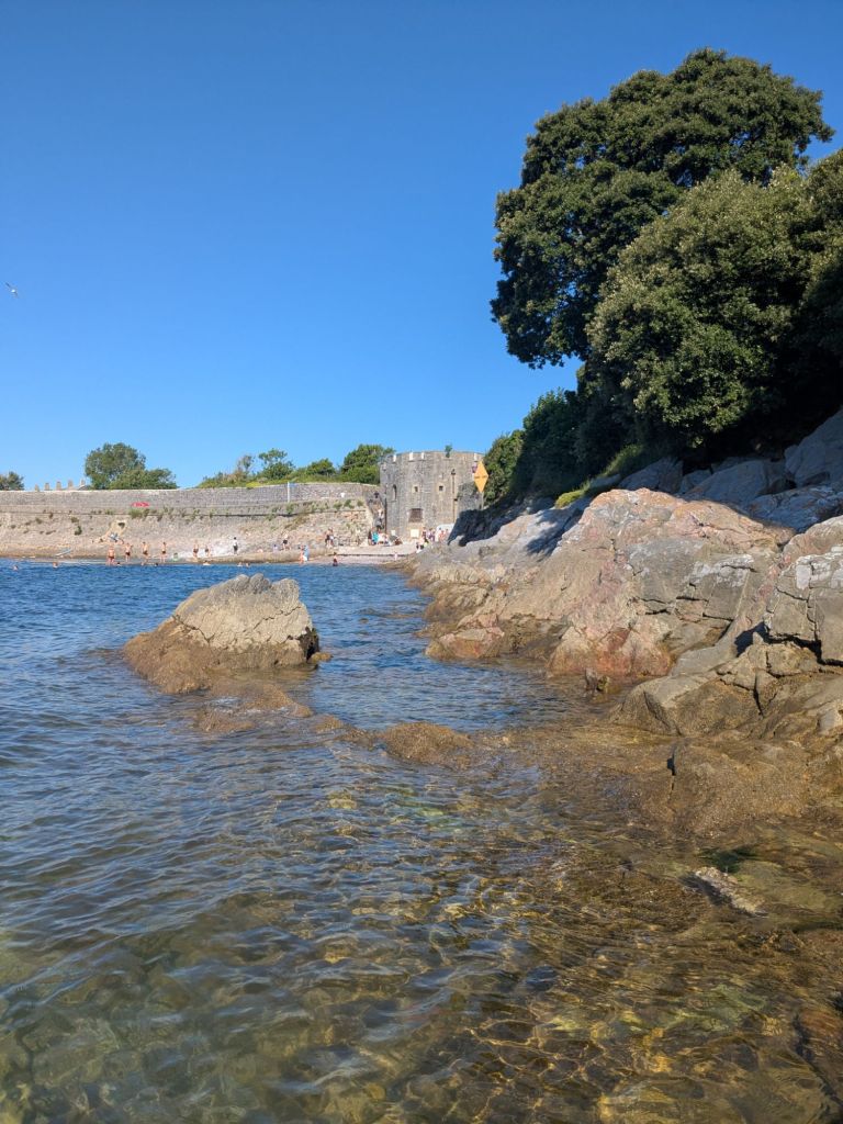 I can’t say we had this to ourselves, maybe 20 or so people found their way here in the hour or so it took for two separate swims and dog care in the shade. Seeking shade at 10am is the behaviour of holidays, not quite normal for our tiny part of Devon. Long may it last.