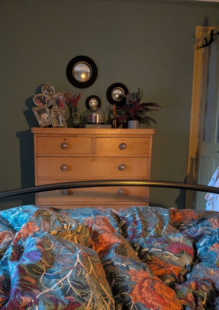Our spare room sits snugly in the centre of the house. The window faces west to a different portion of the sea. Not that you can see the sea but you can hear it, and with a high tide at 11:30 we could hear waves crashing on rocks. Mini-break perfection in our own home.