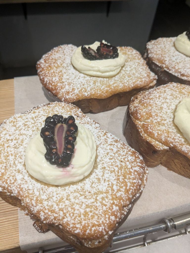 I was reading her Whatsapp and laughing while queuing in a local coffee shop.It is not often that baked goods  can make me chuckle but the Bostock’s on offer tickled my funny bone in a similar way.