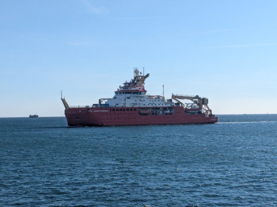It is not every day that the bobbers get to bob in a very bobby sea with a world renowned natural scientist. But yesterday Sir David Attenborough sailed right past our swim zone.