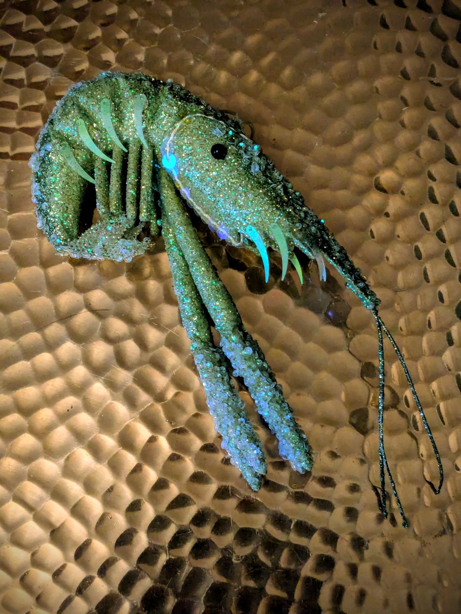 Now Mr Prawn is boxed up and ready to be packed away with all the other tree decorations from around the world.