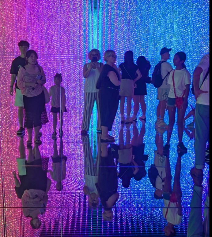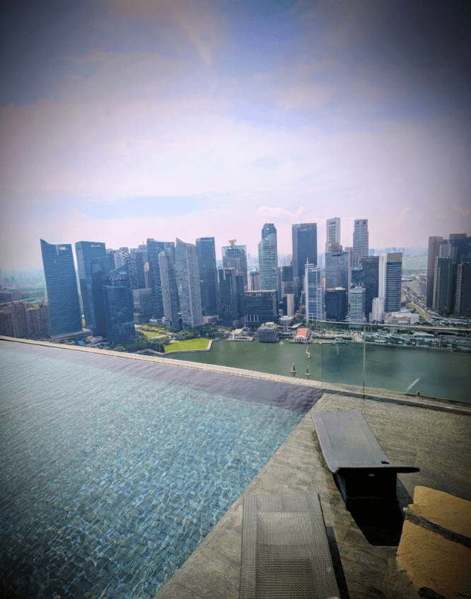 Somewhere in this photo from the Marina Bay swimming pool is Braddell Heights. Very far distant but there nevertheless.