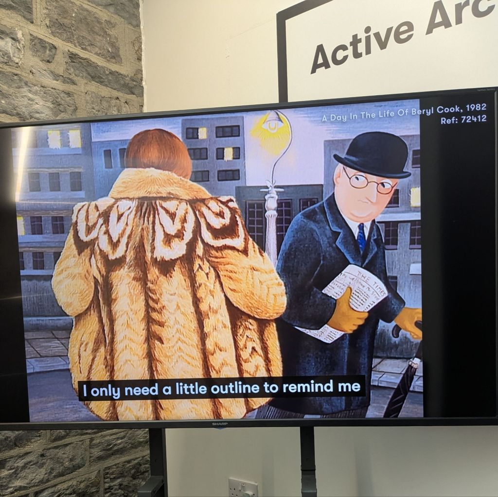 My 1940’s tiger print fake fur coat had her moment. I went to the disco dressed as the flashing woman in the top picture of a video about the life and work of Beryl Cook.