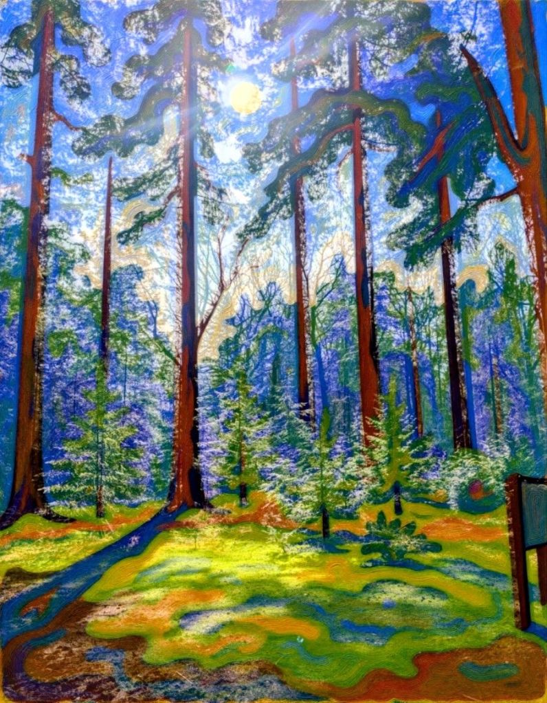 No rest for the only dog, the next day her closer family set off to the depth of the New Forest for some Forest Bathing. A long walk in bright sunshine amongst massive trees.