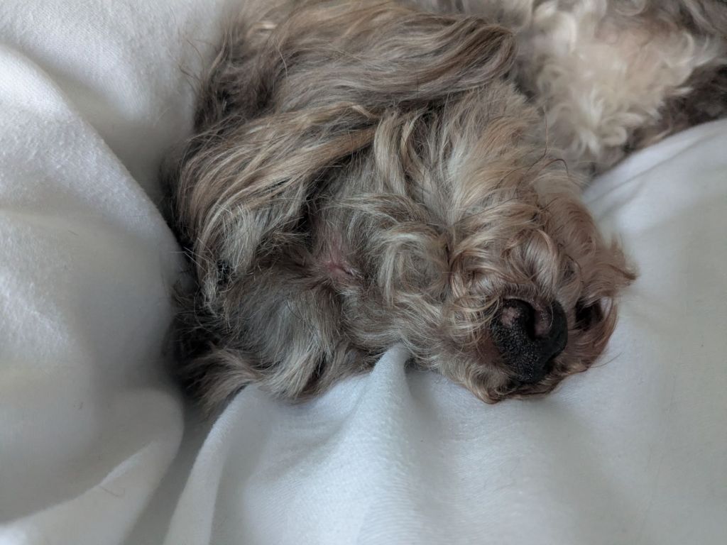 But Hugo left the building in December. Leaving Lola the enormous responsibility of attending their human Great Grandmothers funeral alone. Where normally she just requisitioned cuddles, she has been obliged to both Schmooz and Cuddle.