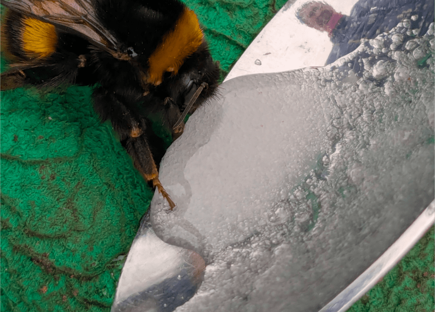 A month ago the Tennis Club gardeners saved an exhausted Queen Bee. The last month has not been particularly kind to her as Spring has not quite hit the accelerator pedal with any reliability.